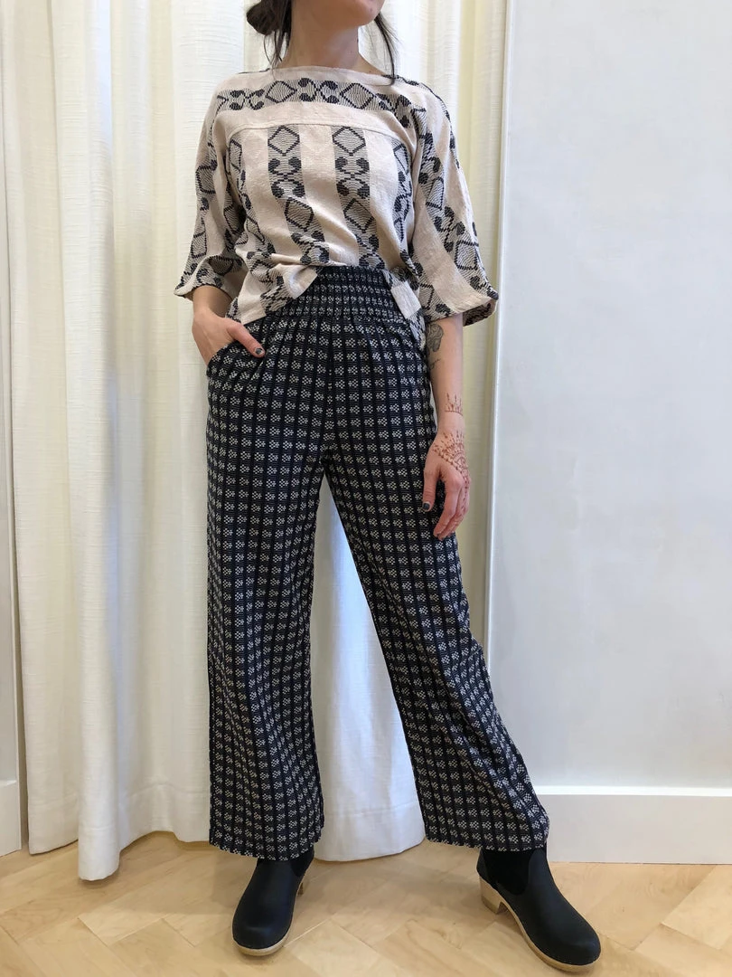 AÂ dolman sleeved top with elbow length sleeves and a front and back yoke. Fully reversible.