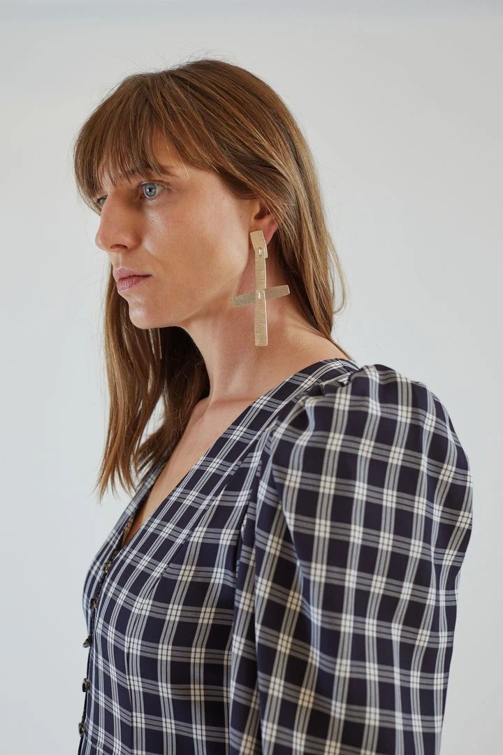 Lightweight cross earring with ribbed texture.