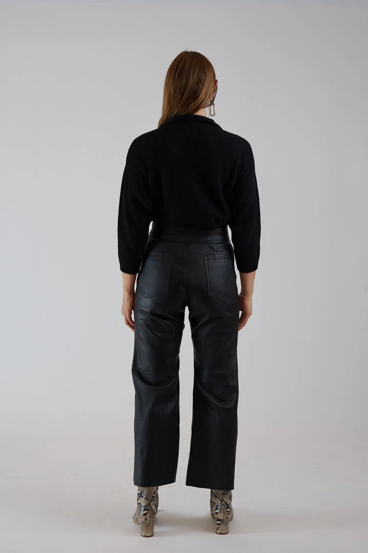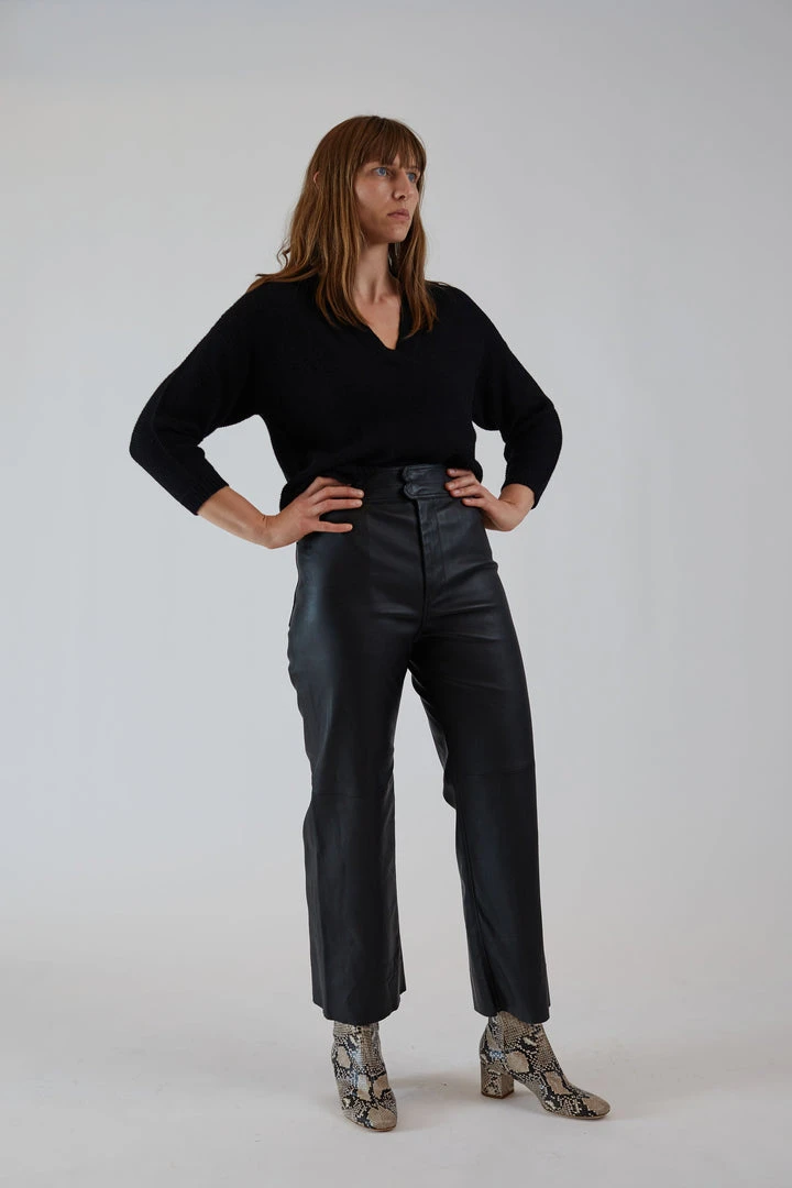The Monterey Leather Pant is a timeless investment, cut from lamb leather that’s really soft to the touch, they sit high on the waist to compliment your curves. Zipper and hook fly, front and back pockets, with cropped wide legs.