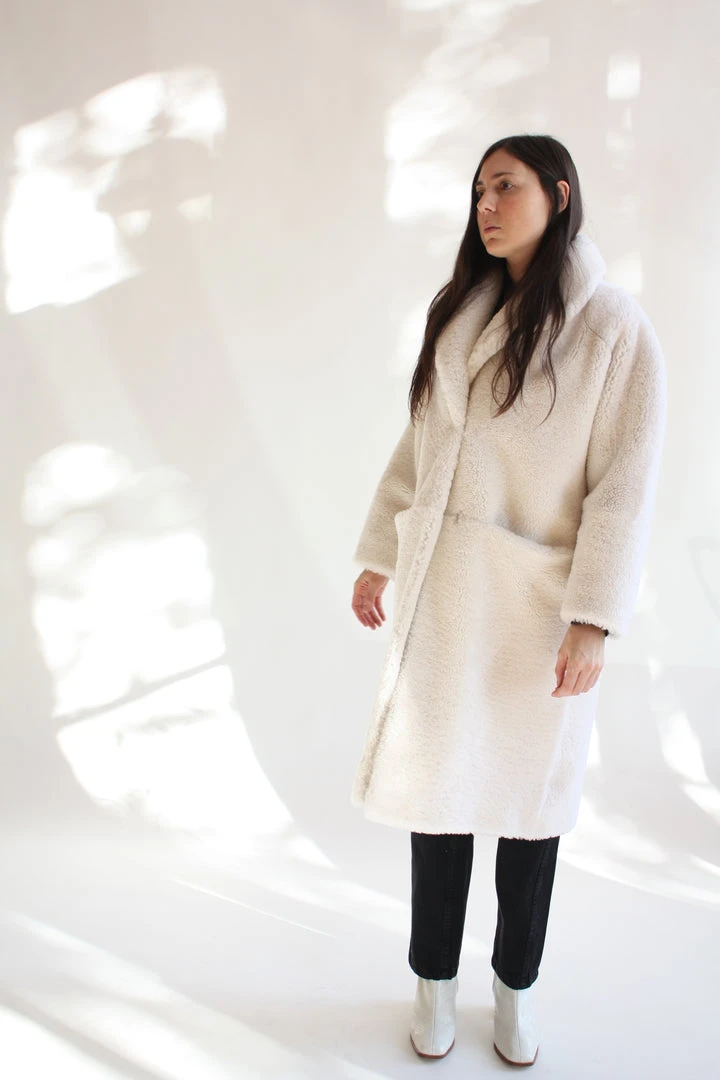 A soft and luxurious parka to envelop the body and provide instant polish. Simple silhouette with single button closure and deep cozy pockets. Cut from 100% lamb shearling and designed to weather the elements wherever you go.