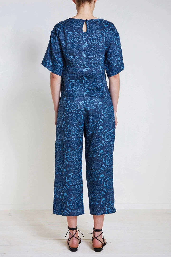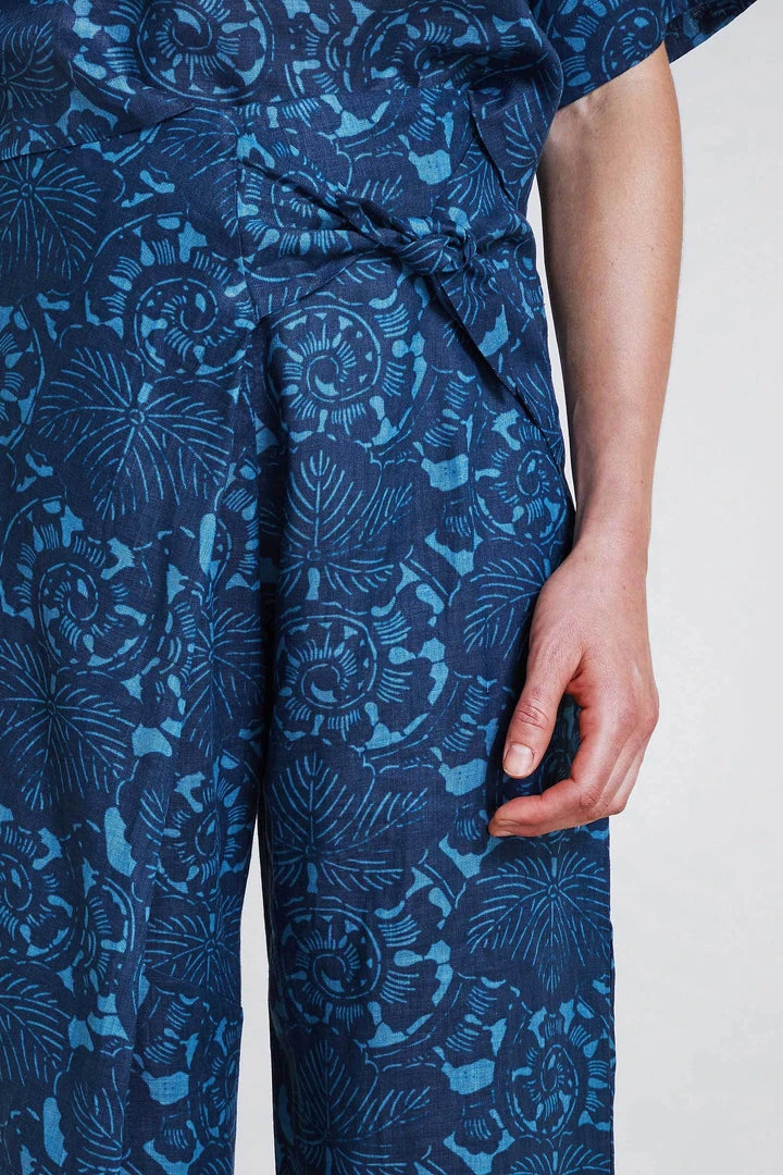 The Cruz Wrap Pant is cut from playful ivy printed linen. Faux-wrap effect at the front, cropped wide leg shape that hits above the ankle and side zipper closure.