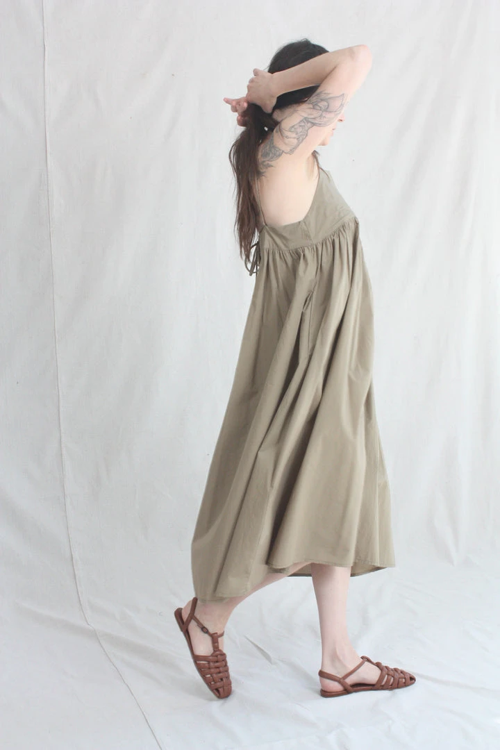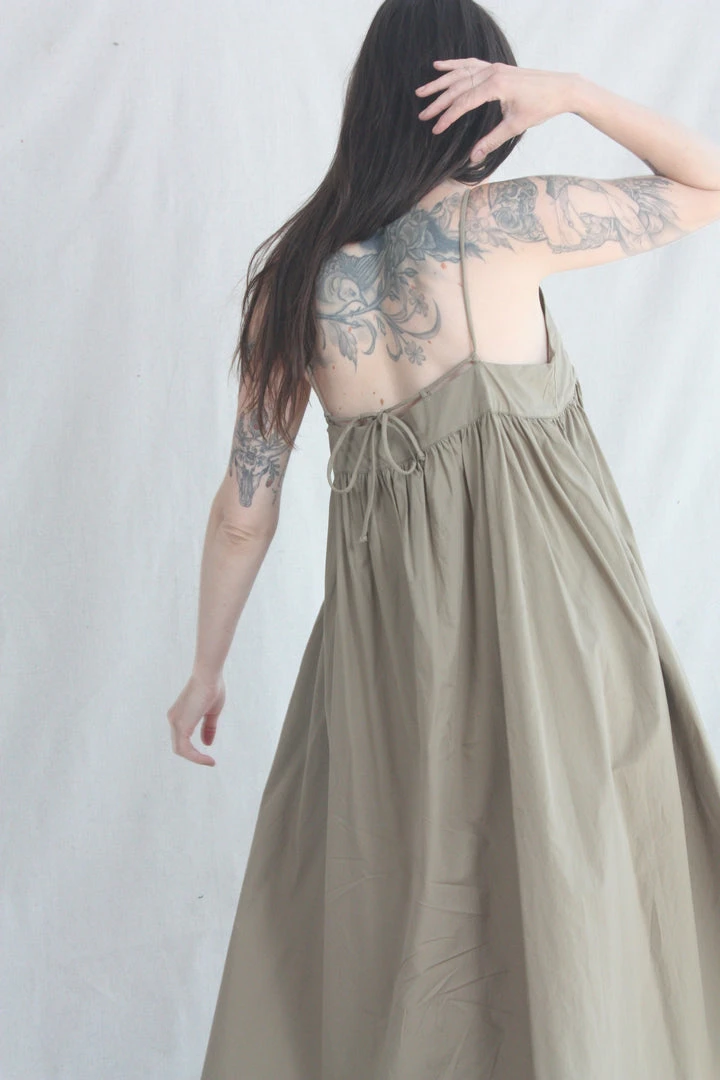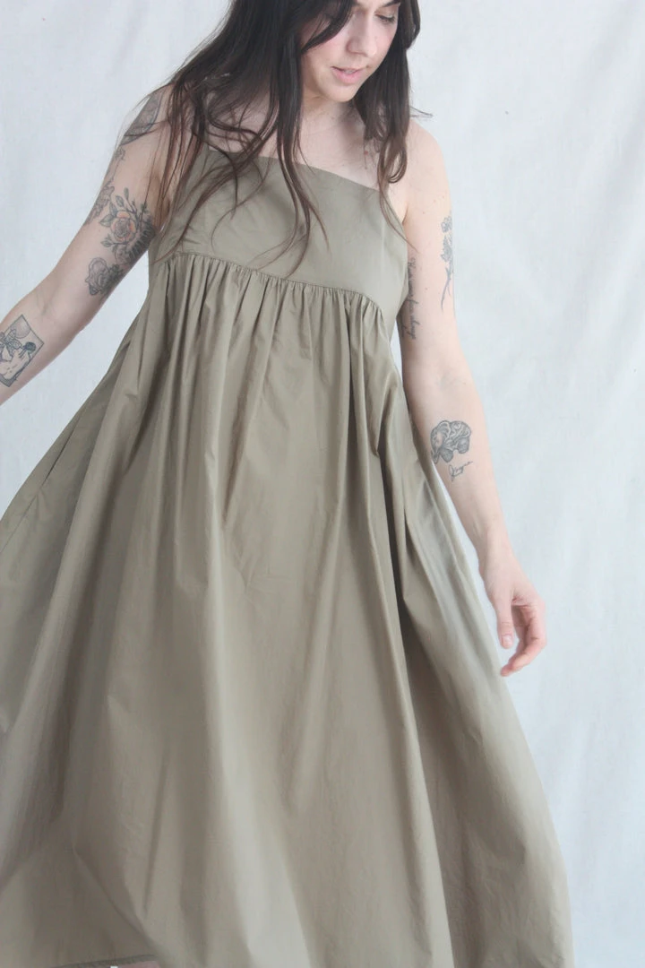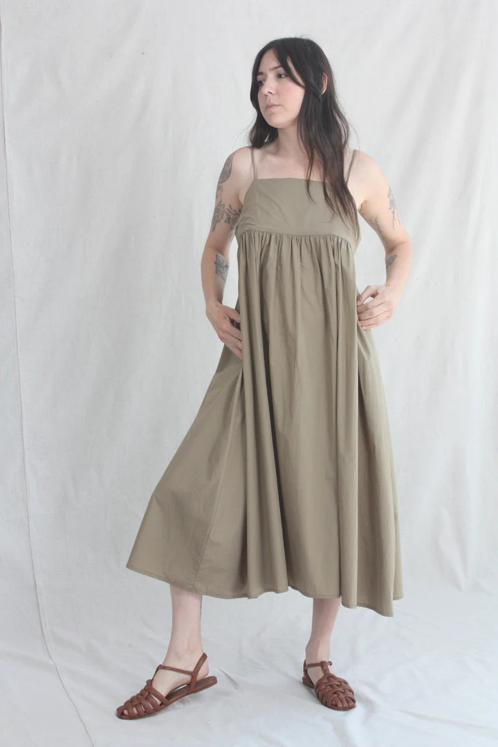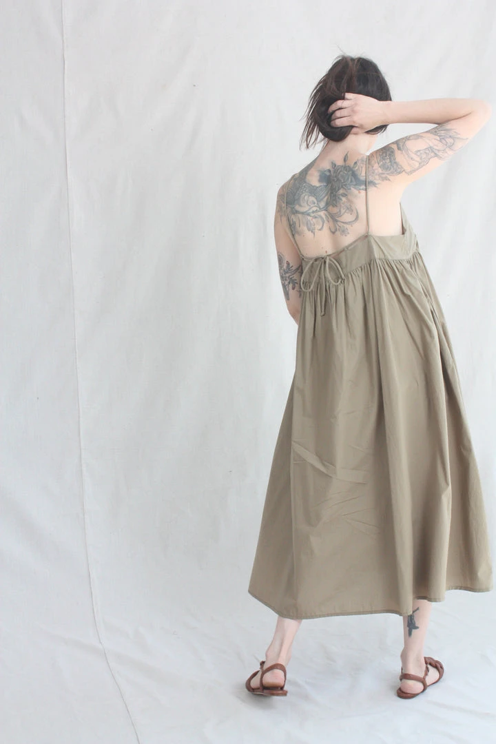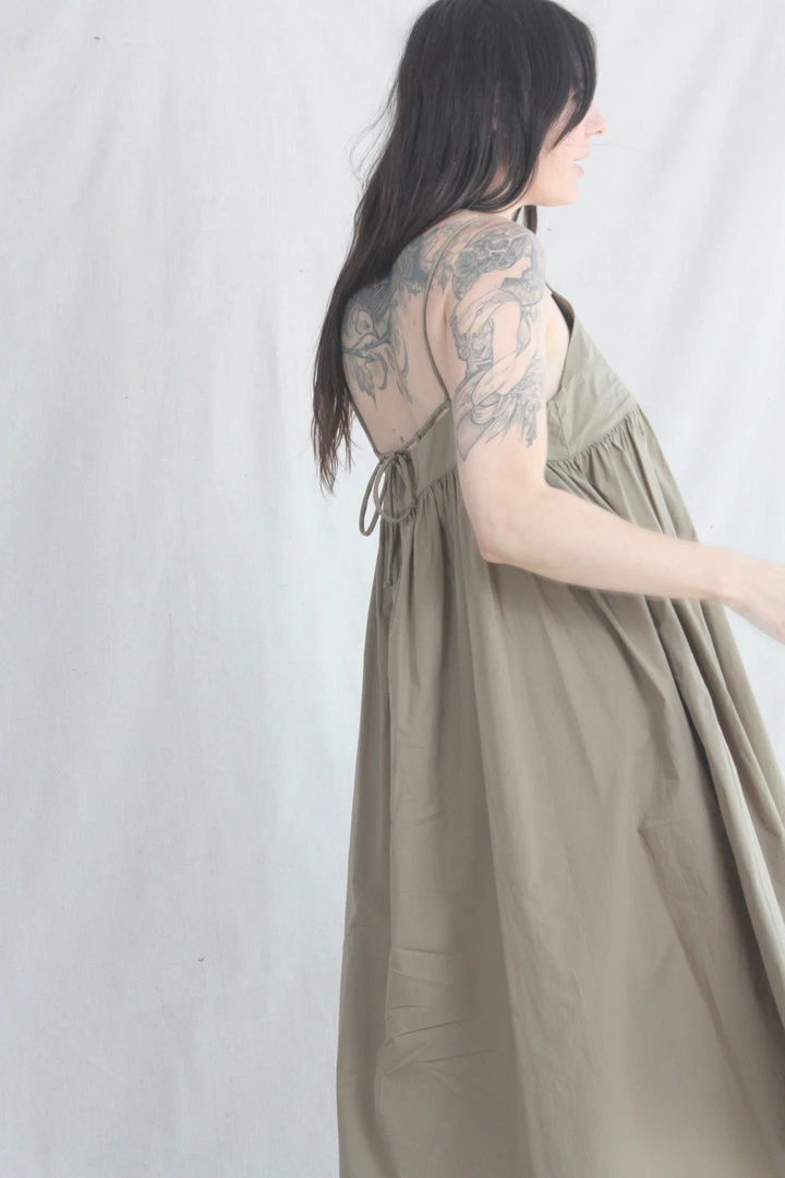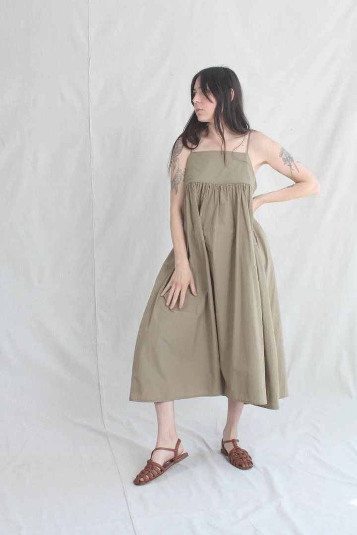 AÂ relaxed, airy dress with shirring detail all around. Adjustable tie strap. Side seam pockets.