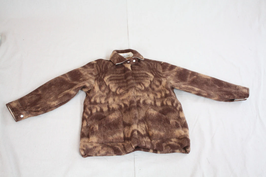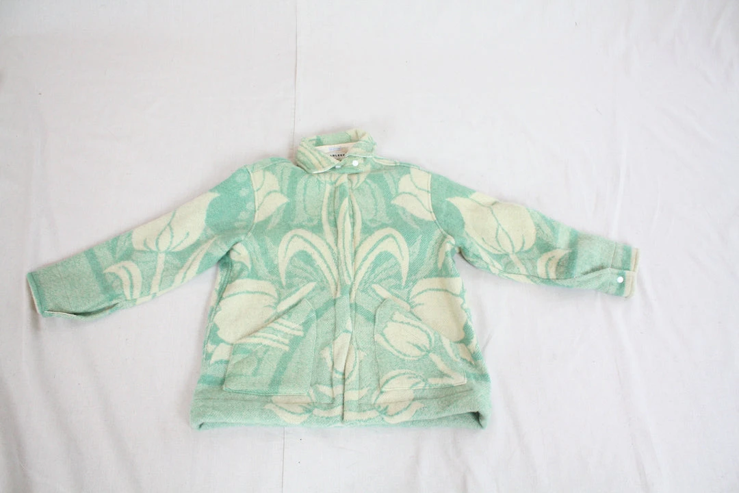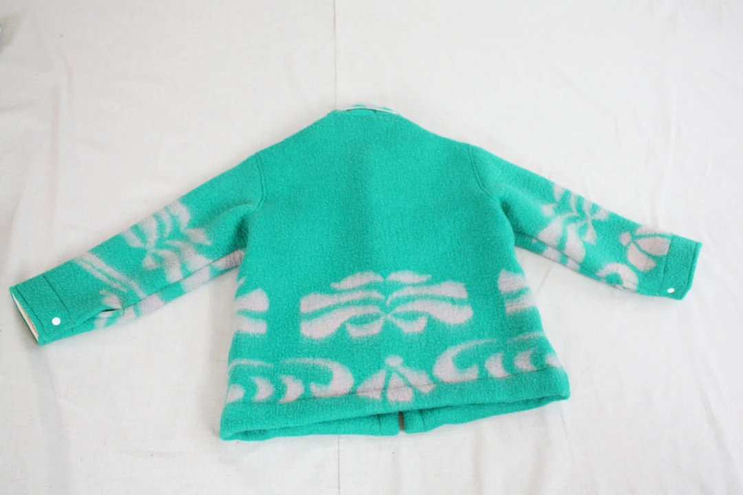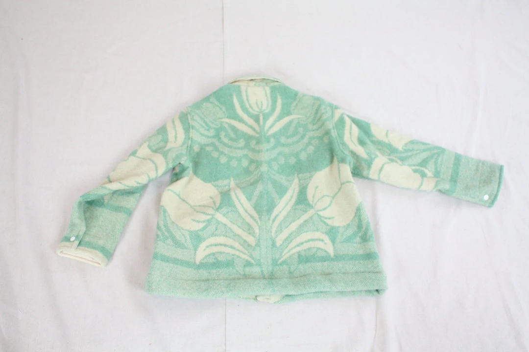 The Ardmore Blanket Jacket is constructed from a vintage wool blanket to create a completely one-of-a-kind jacket that is delightfully cozy. Features two patch pockets, flat felled side seams and white snap closures.