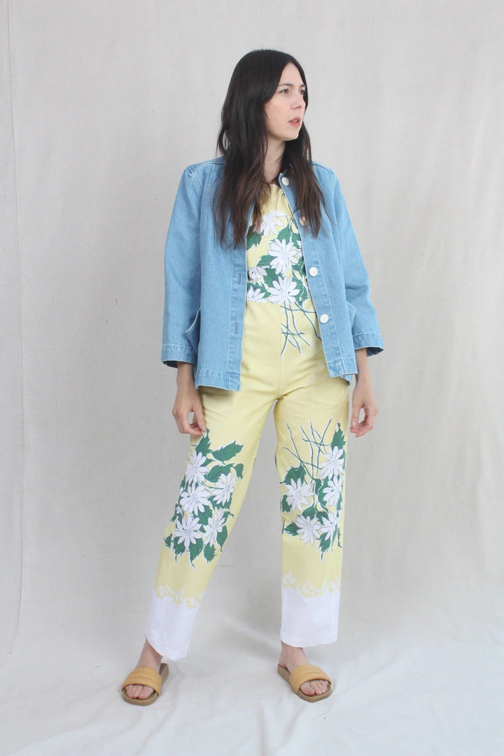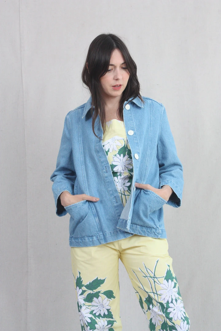 A denim jacket with bracelet-length sleeves, an a-line shape, and voluminous pockets. A perfect layering piece, in a soft washed denim that goes with everything!