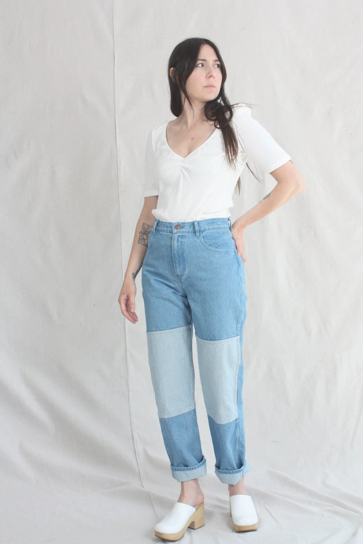 The Lara Tee is constructed from deadstock pointelle and features short sleeves and a sweetheart neckline.