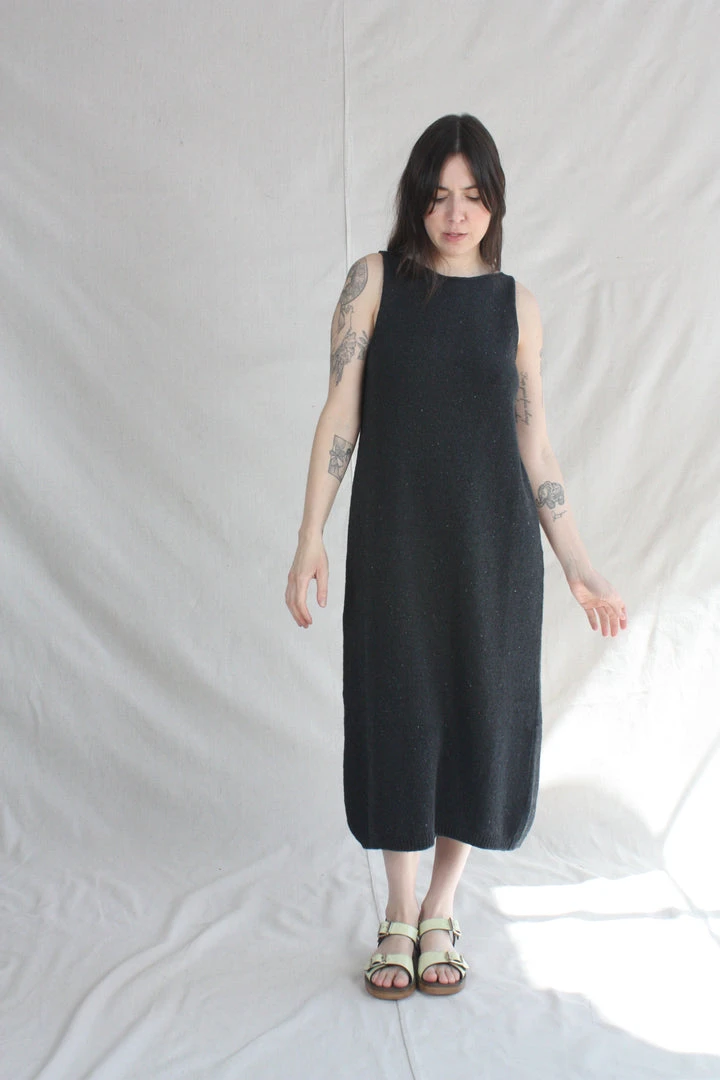 Designed to feel it loosely on the body, the boxy shape gives it a comfy and easy to wear definition. Detailed with boat neck and back opening on the bottom. Light structure, soft texture with a beautiful melange. This dress is ethically and carefully manufactured in La Coruña, from high quality yarn, with Japanese machines and finished by hand. Cordera uses yarns with traceability certified and a production cycle that minimizes their impact on the environment.