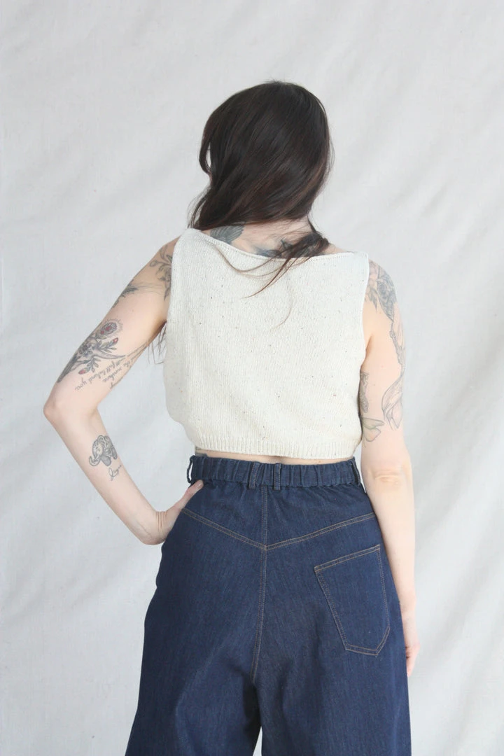 This boxy, cropped knit tank is designed to loosely fit the body, making it an easy staple. Boatneck. Light and soft texture with a beautiful melange. This top is ethically and carefully manufactured in La Coruña, from high quality yarn, with Japanese machines and finished by hand. Cordera uses yarns with traceability certified and production cycles to minimize their impact on the environment.