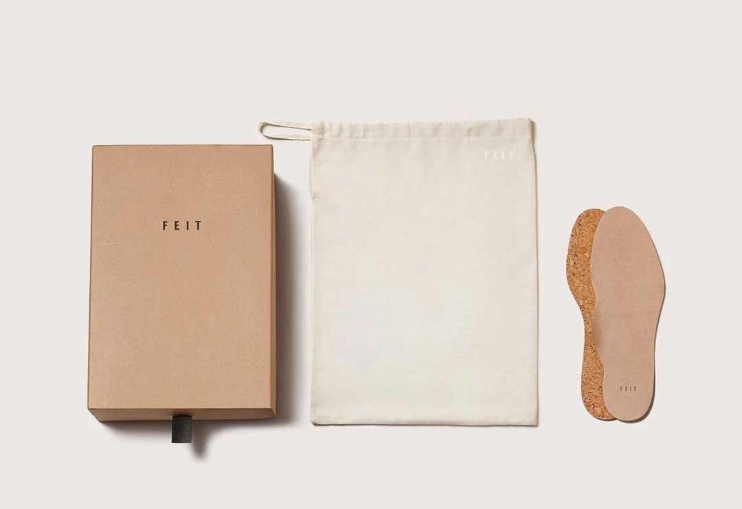 All FEIT shoes are made from start to finish by one master craftsman. The one-piece upper is sewn by hand directly to the midsole. A cork footbed is added before cementing the rubber outsole to the midsole using a natural, water-based glue. We refer to this process as a modified handsewn Goodyear construction—this method ensures all FEIT shoes can be resoled.