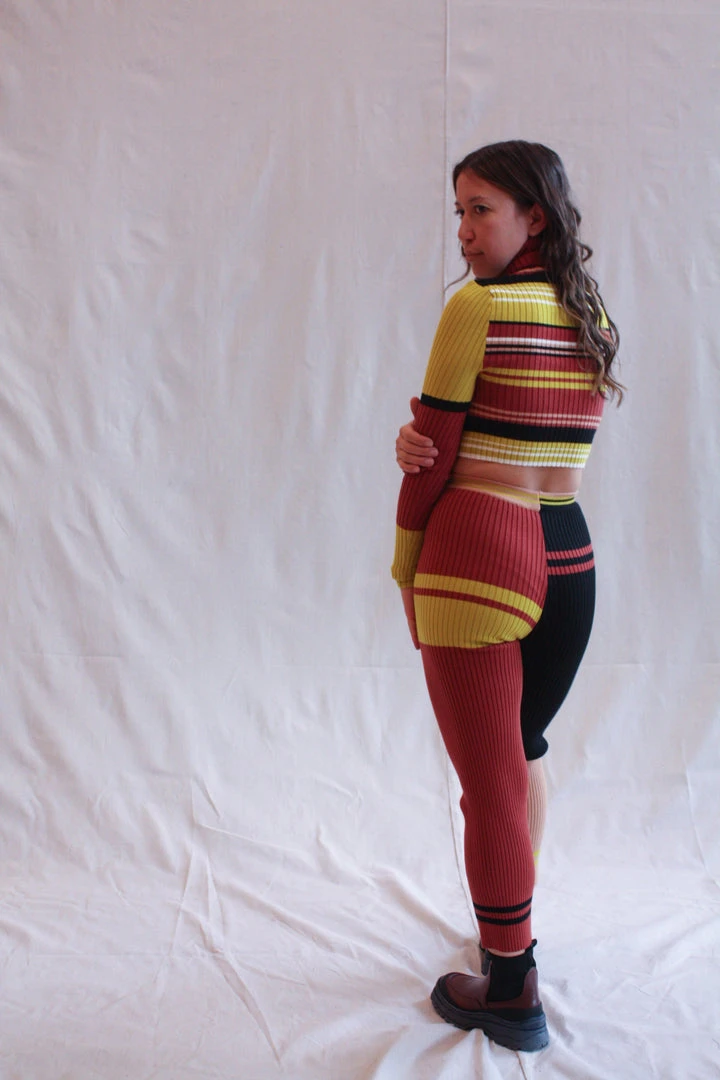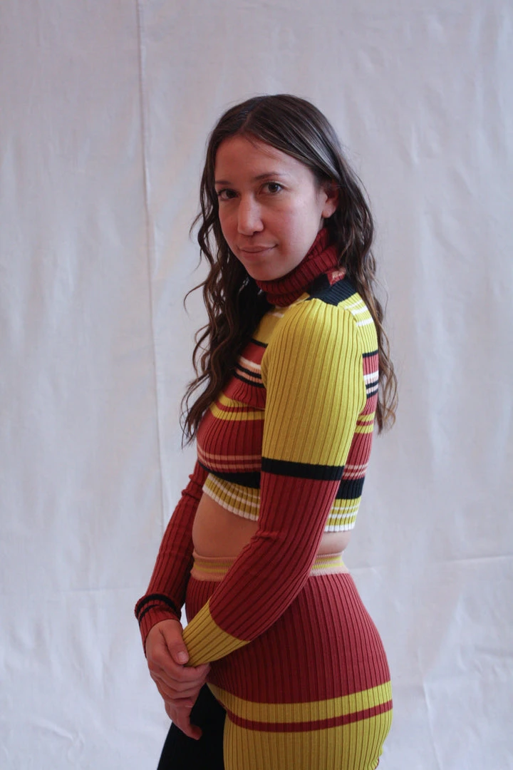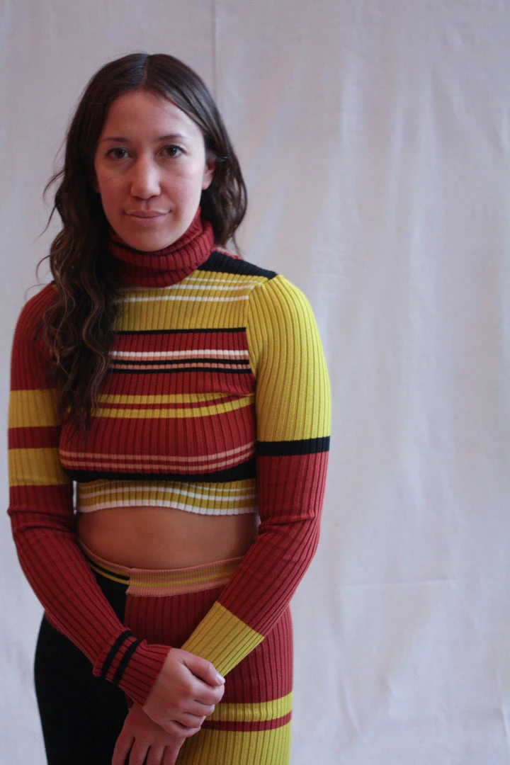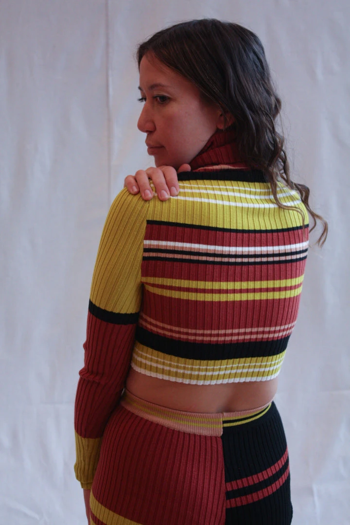 Shrunken ribbed cropped turtleneck in an engineered stripe.Â