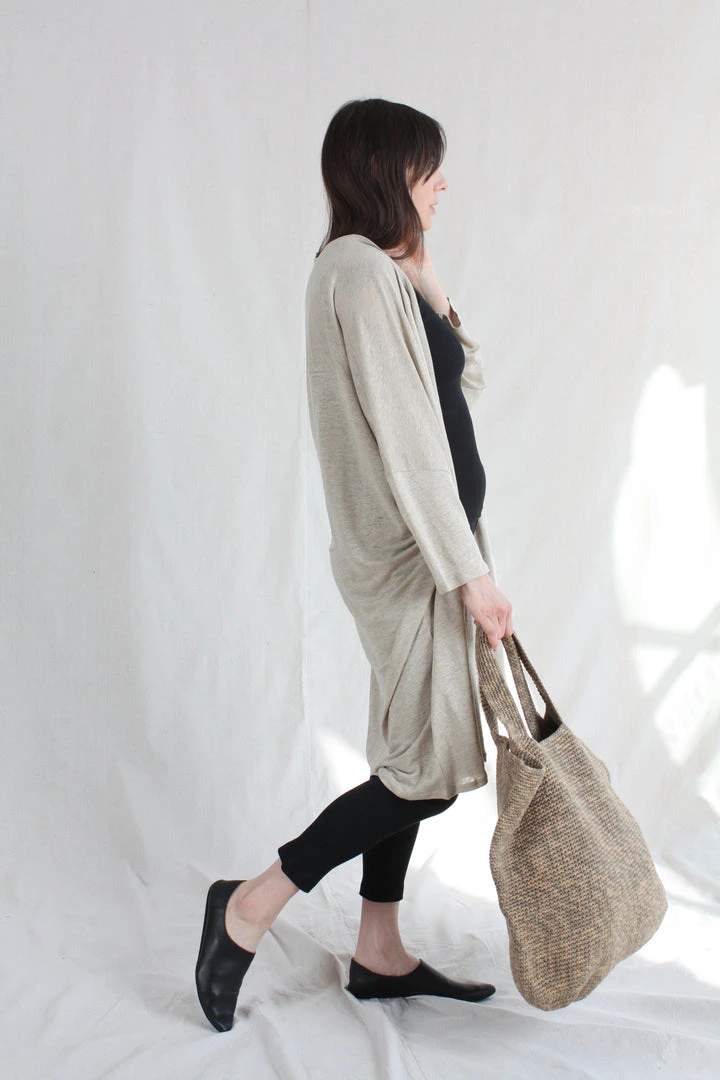 Heavy cotton, hand crochet bag in a hand dyed optic space yarn. Seamless construction.