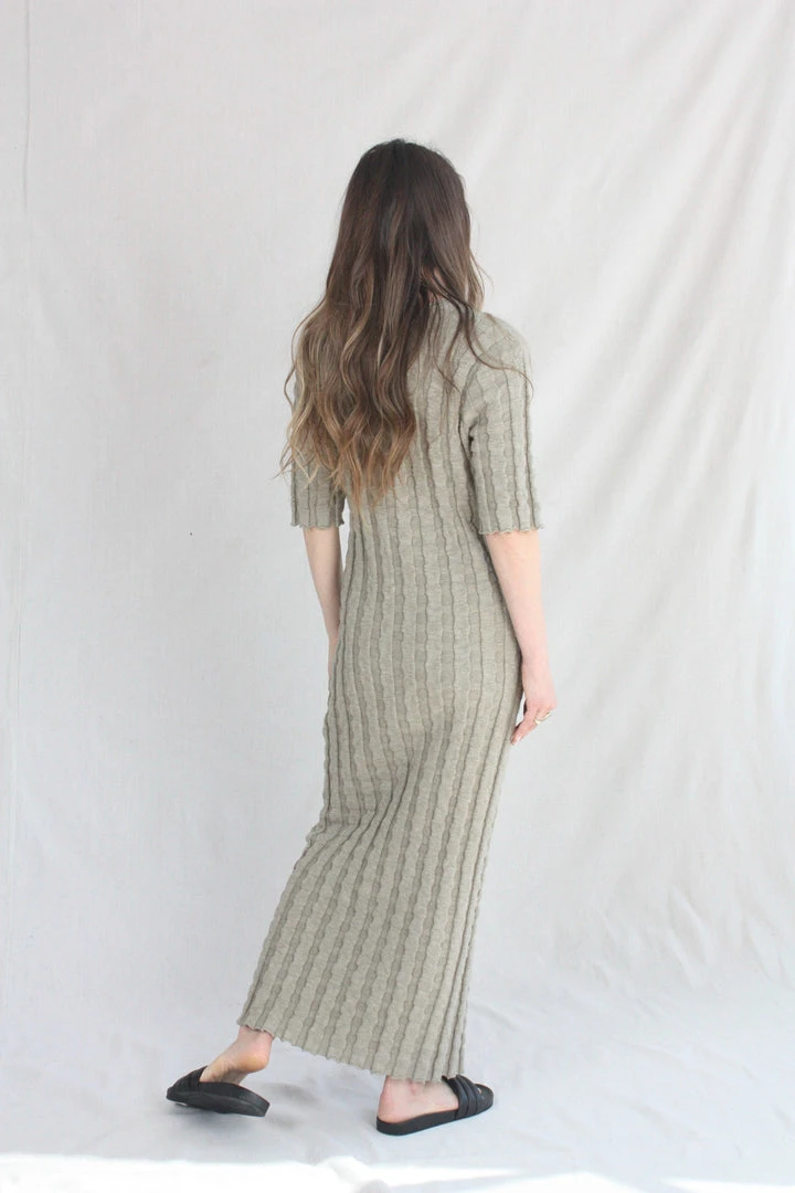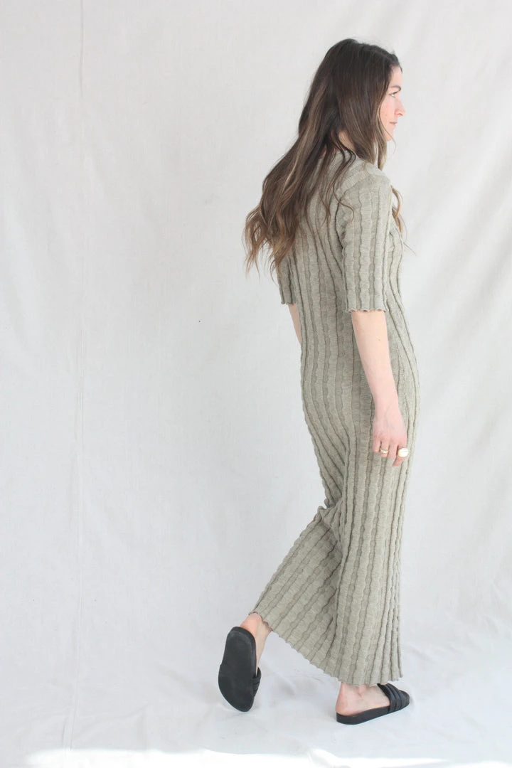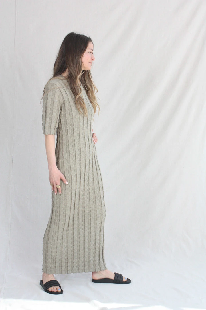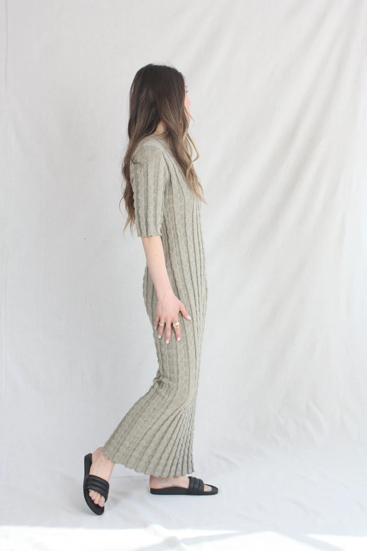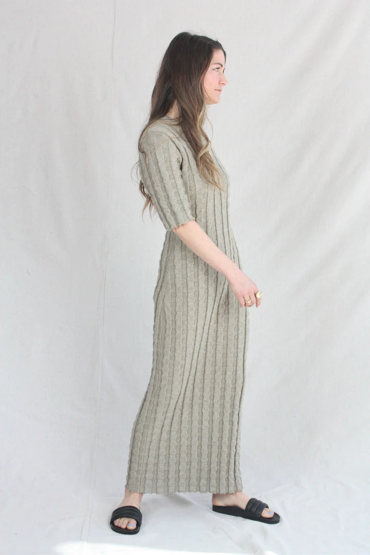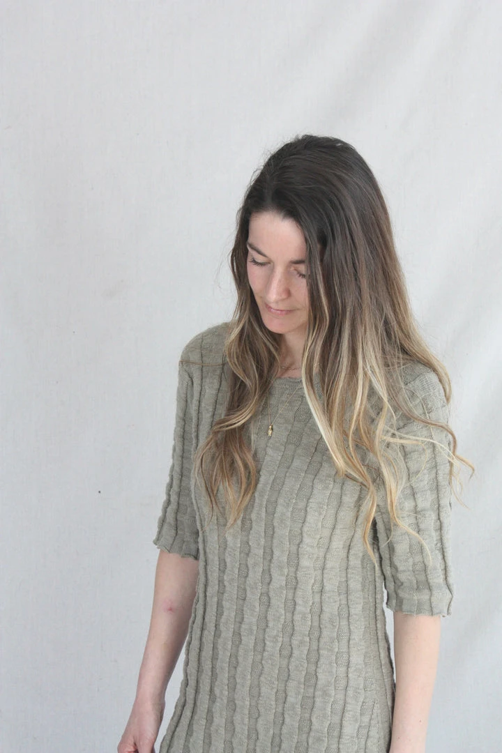 Scop neck tee dress in an irregular slubbed texture. Puckered rib texture with subtle stretch.Â