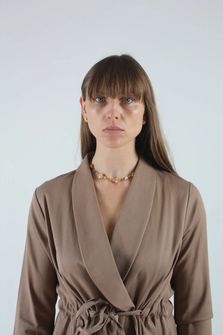 Individually cast poppy flowers are set between chain links in this subtle statement piece made of gold-plated brass. Great on it’s own or layered with other necklaces