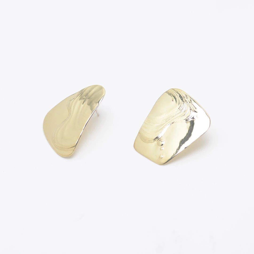 These asymmetric brass studs are inspired by bold splatter’s of Jackson Pollack’s work. Surprisingly lightweight.