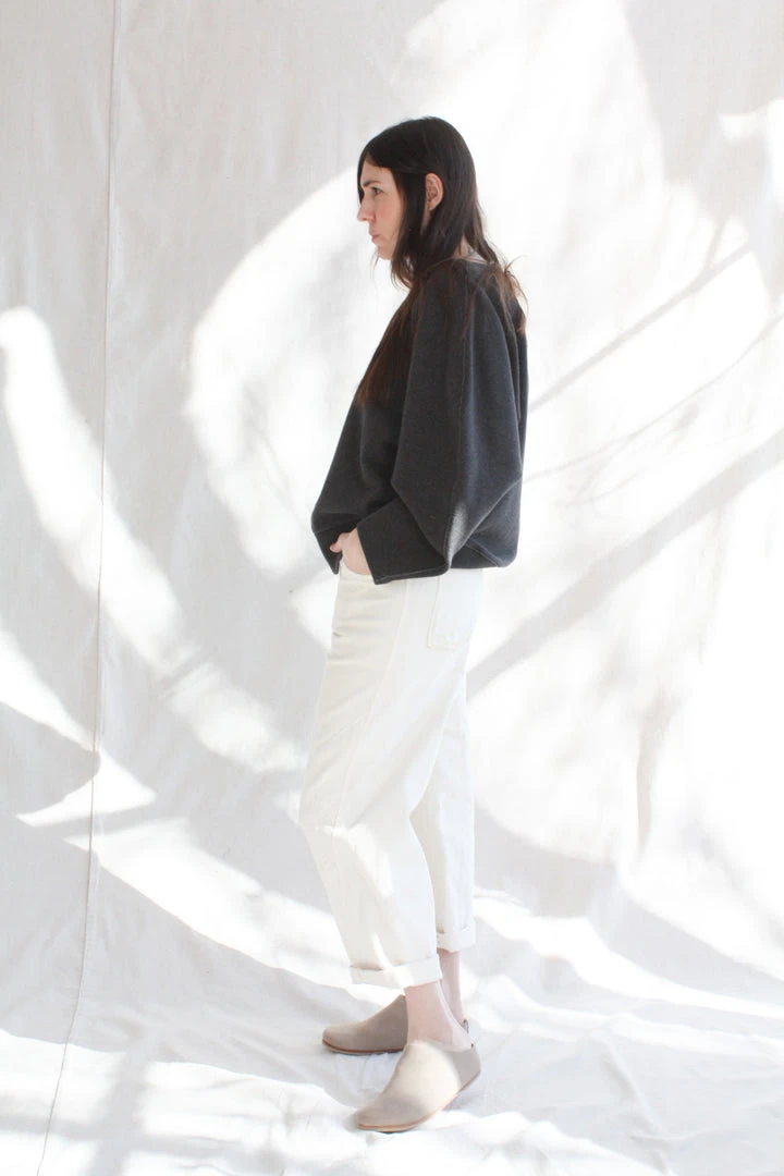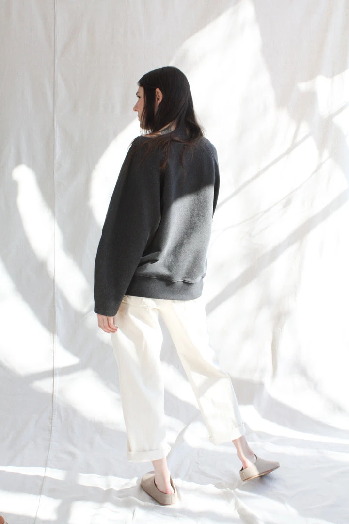 Blake is a full-length raglan sweatshirt with a round open neck, oversized sleeves, and a fitted, ribbed hem. Made from organic cotton and elastane
