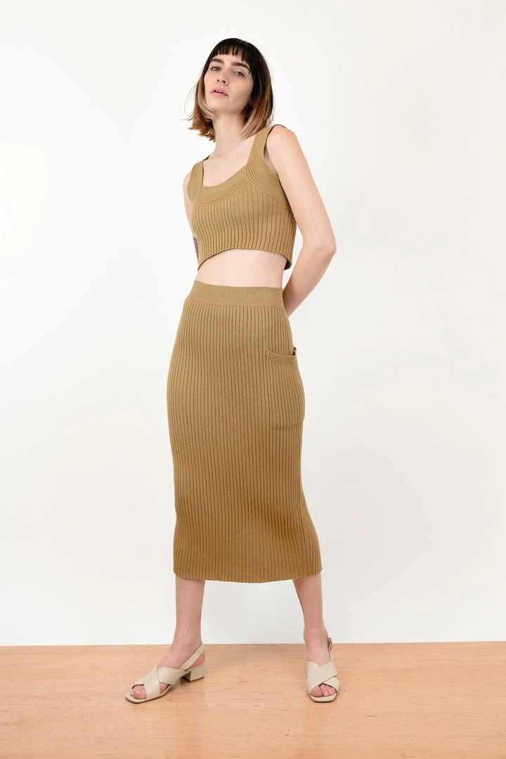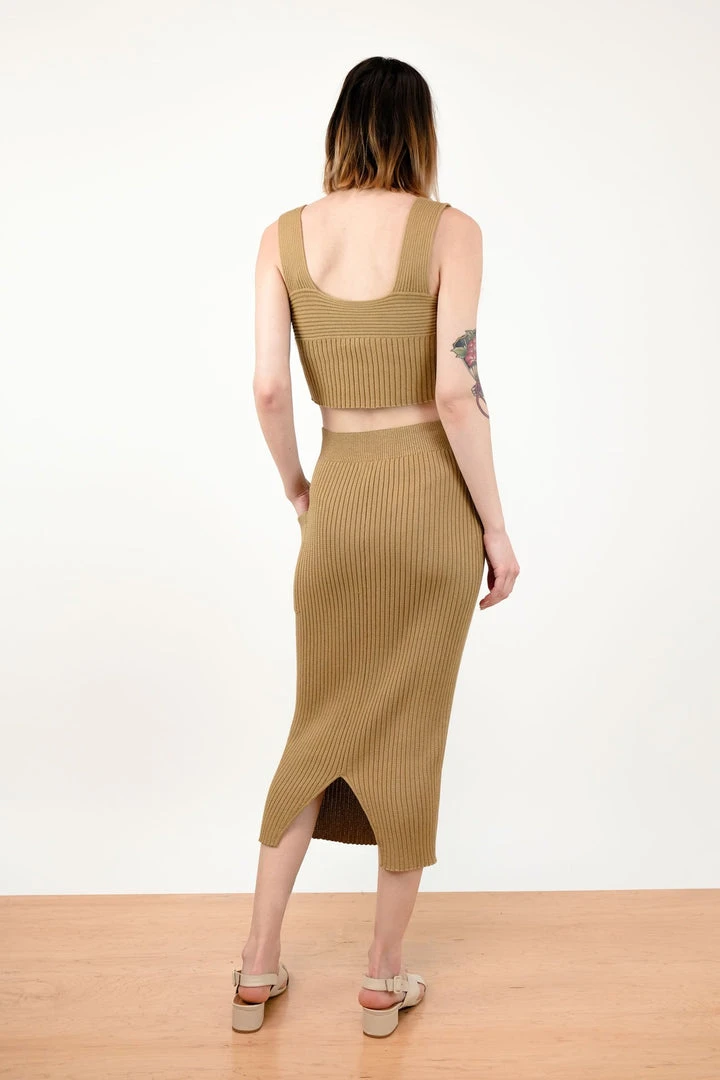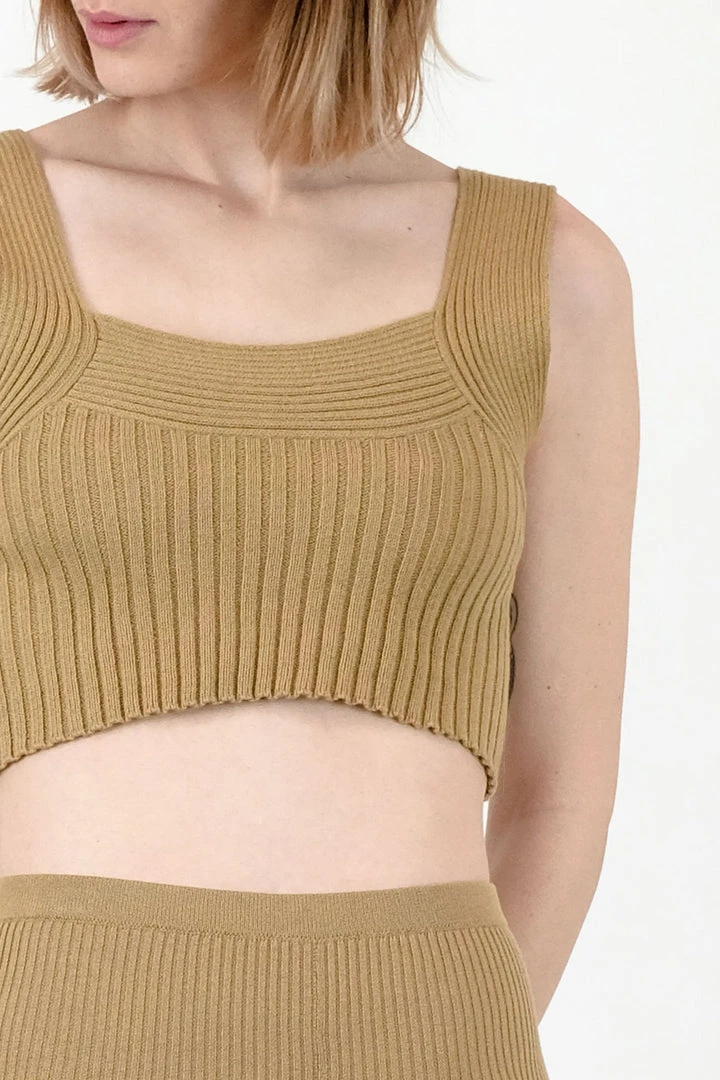 Cropped rib knit tank with a scoop neck, and wide straps.