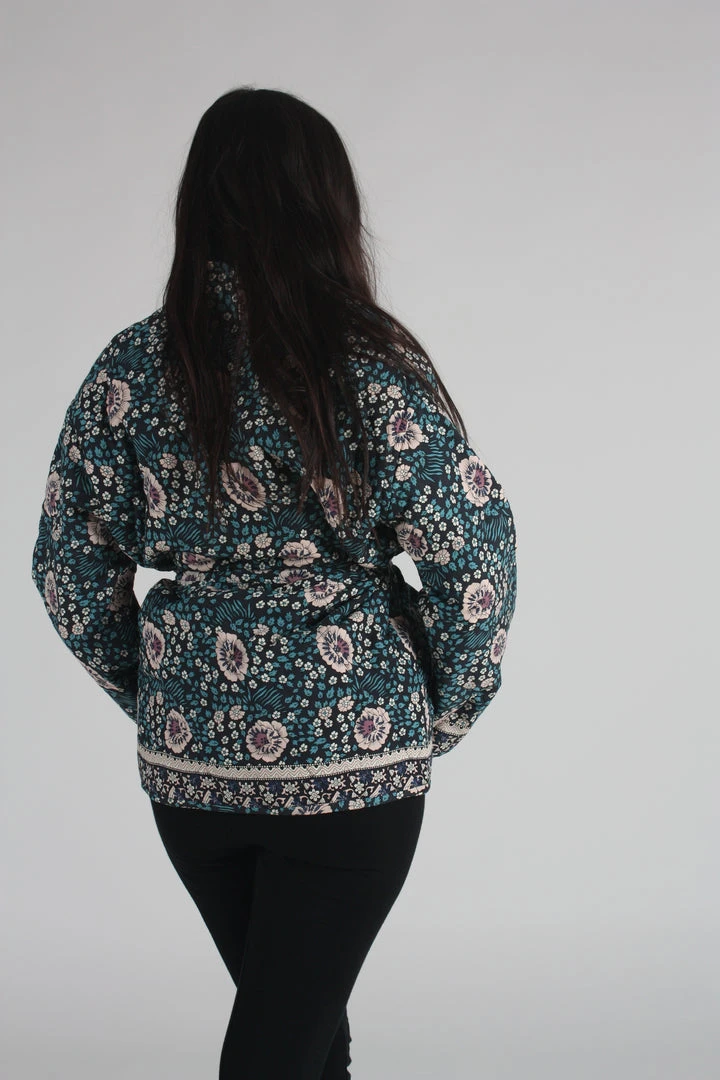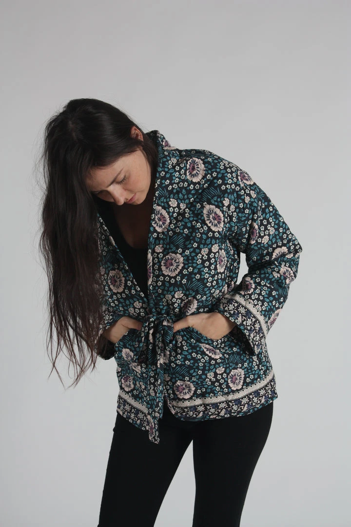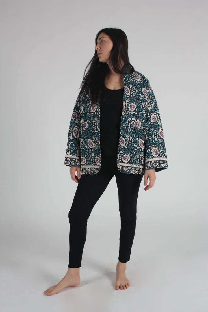 Quilted open jacket. Comes with sash.