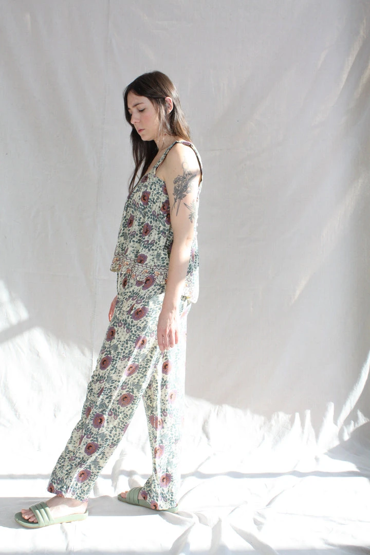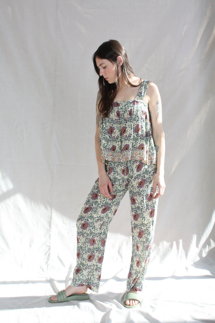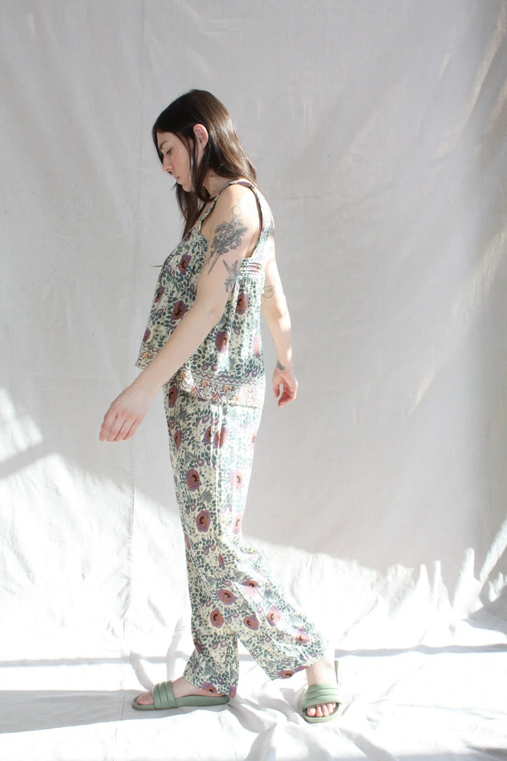 Easy and chic lounge pants. Cased elastic waist with tasseled tie, pockets, and loose straight legs. Hits at the ankle.
