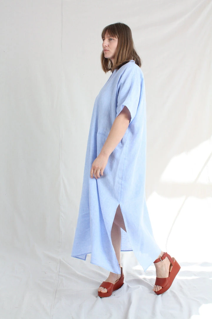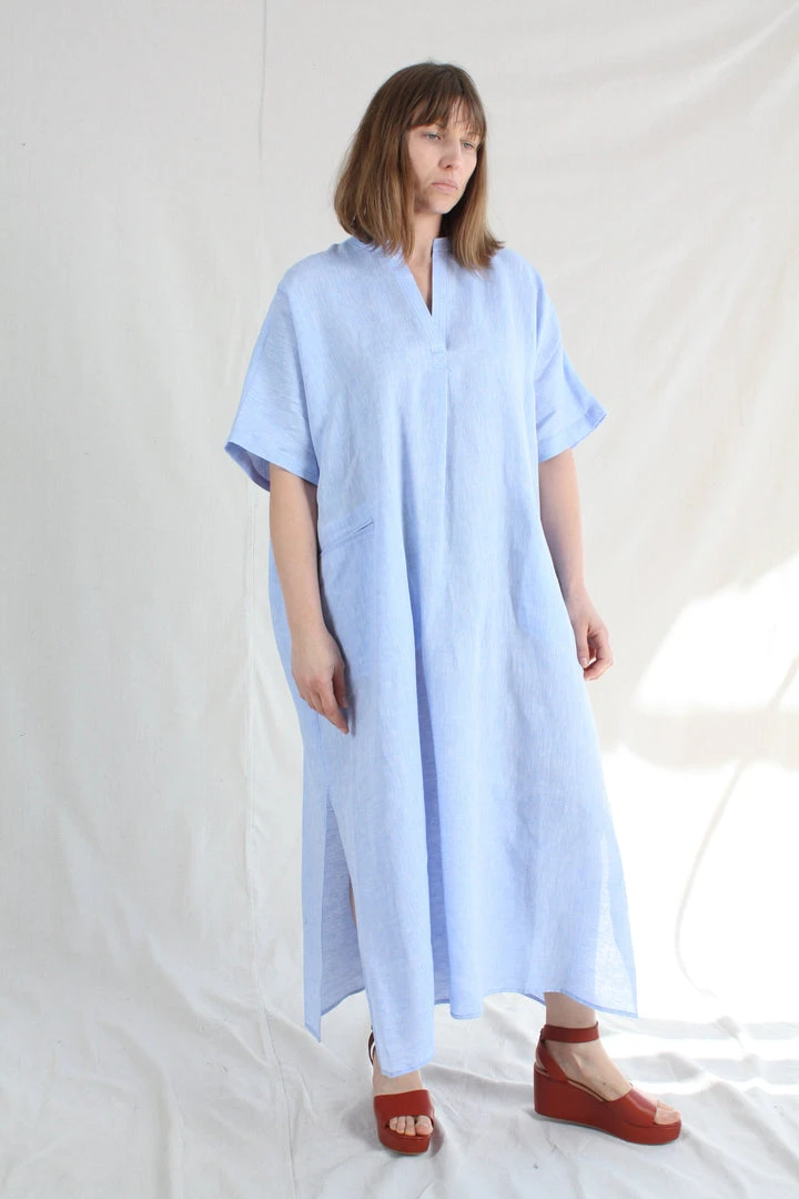 The airy Culver Dress slips on easily as daywear or a swim topper. This free-flowing silhouette is cut for an oversized fit. V-neck. Patch pockets at front. Side slits at hemline.