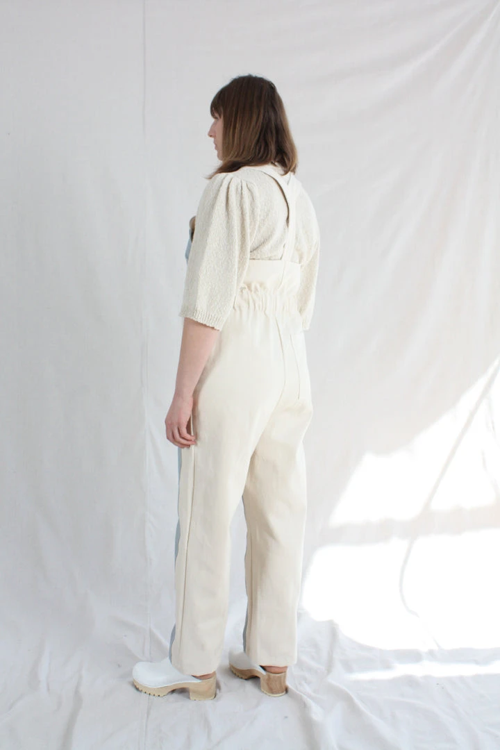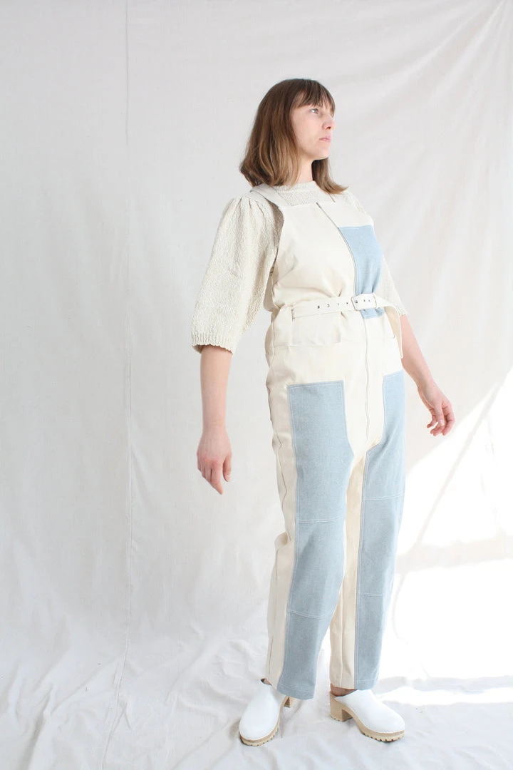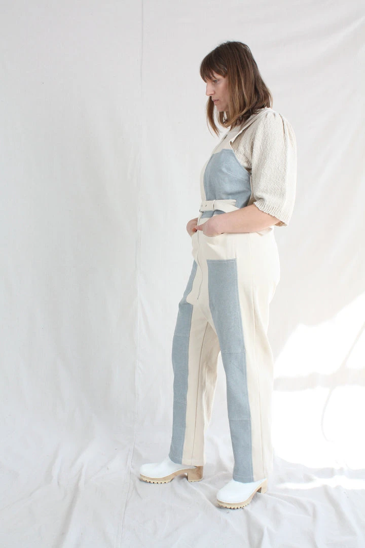 The Handy Overalls have contrast patch detailing, adjustable back strap and top edge, and a self-belt, for maximum utility. Crafted from Upcycled Cotton, this style is made from pre- and post-consumer textile waste, ground back into fiber to spin into new yarns to weave fresh upcycled fabrics. These fibers are all natural, compostable and free of chemicals and dyes leaving an overall positive carbon footprint. Zipper front closure. Patch pockets at front.