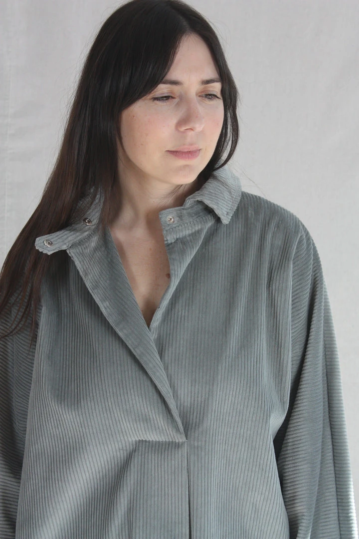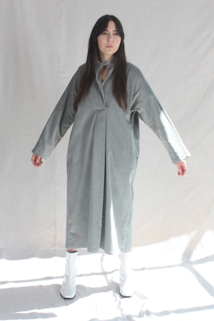 The Marcelino Dress is a boxy, oversized long sleeve dress with a polo collar in soft cotton corduroy. Slip on solo, or layer.