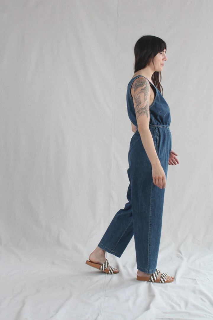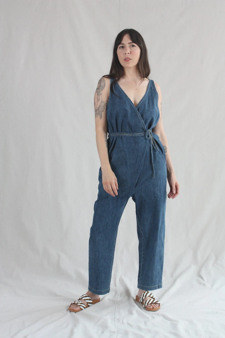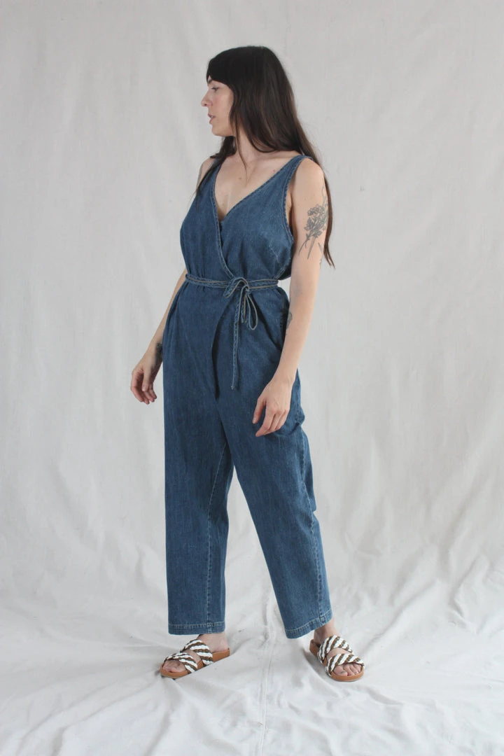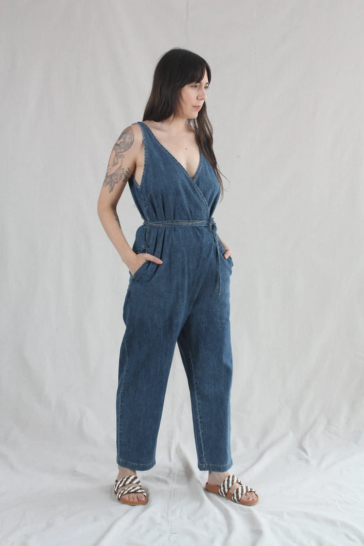 A new take on our classic wrap jumpsuit, the Twiss jumpsuit is made in our Lightweight Denim. V-neckline. Self-tie waist closure. Cropped straight leg.