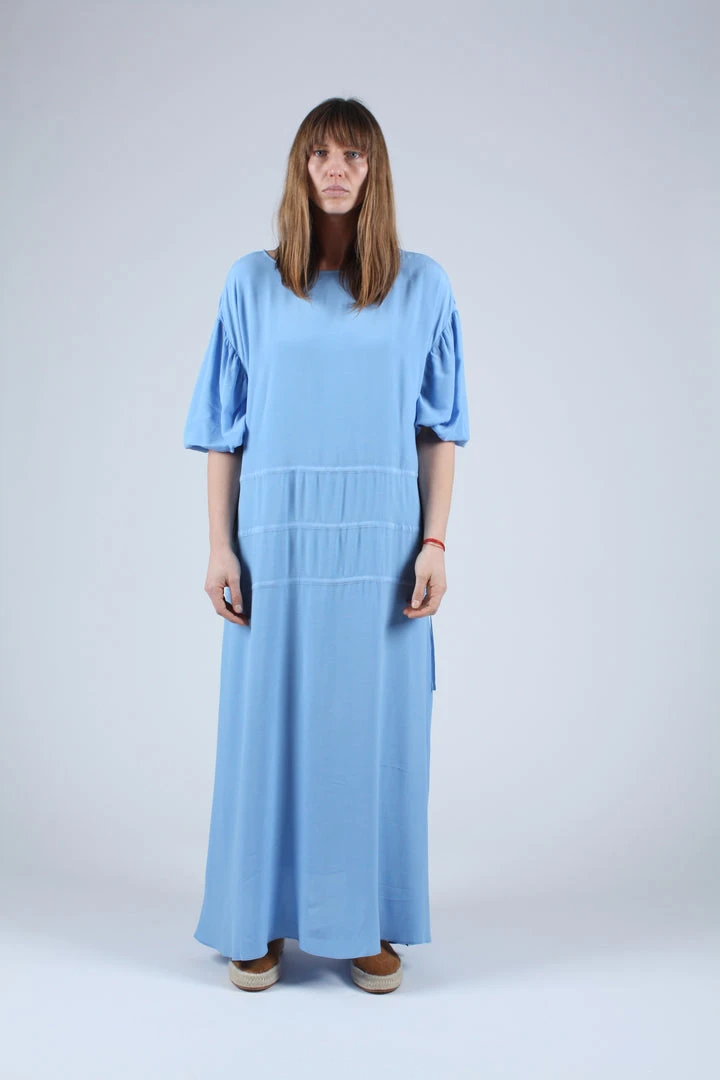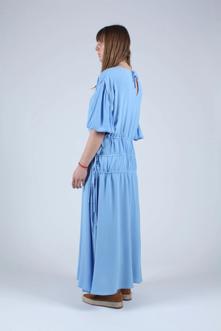 Amane is an oversized dress in a rich crepe. It has a dropped shoulder and drawstring details at the waist that can be tightened or loosened to adjust the fit.Â