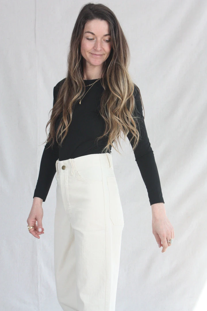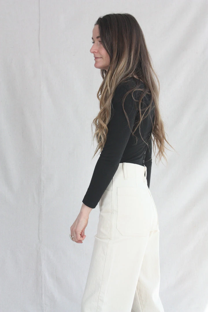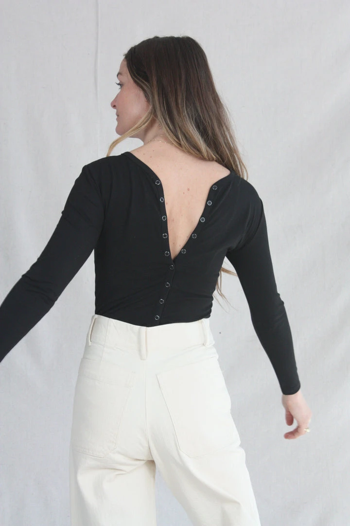 Gardenia is a fitted bodysuit with cropped sleeves. This elastic body is designed with a round neckline and small ring buttons along the back. It is made with sustainability in mind, produced from reused stock fabric. Style this body together with your favorite blazer, denim or shirt and you are ready to go.