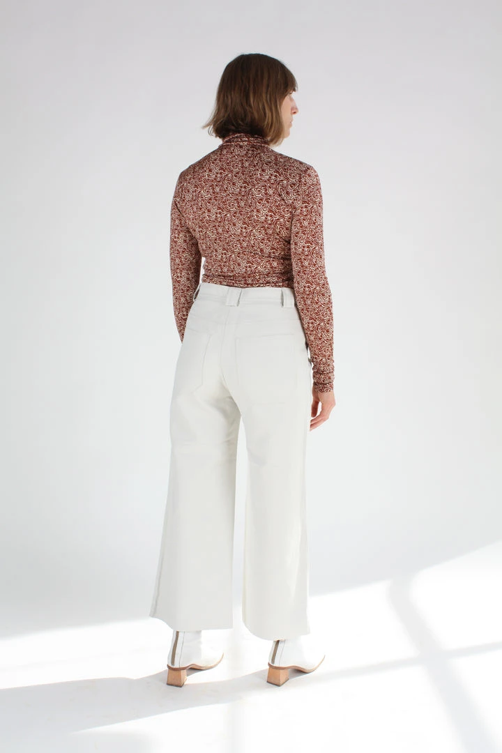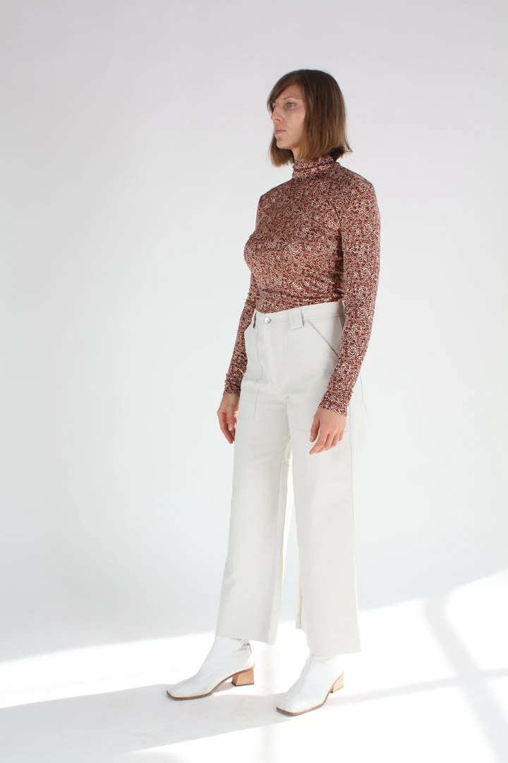 The Marian is a turtleneck in a luxurious viscose jersey. It has a fitted body and neck with extra long sleeves. It features a miniature version of the Rodebjer original inhouse hand-painted seasonal print, inspired by artist brushstrokes. Handwash only.