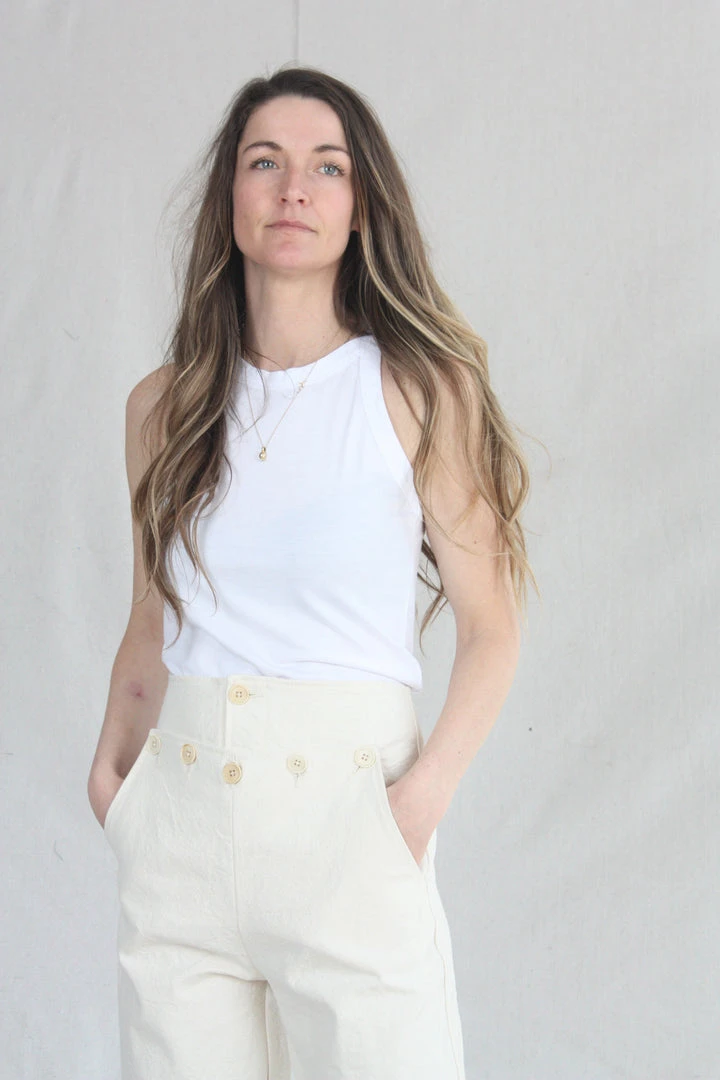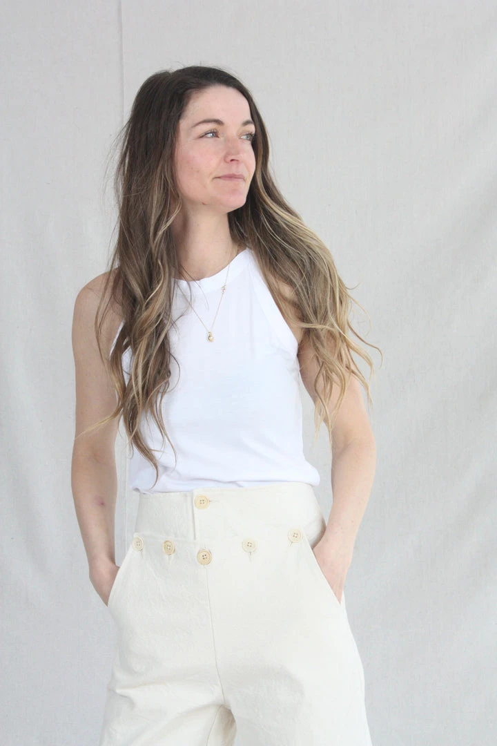 Oana is a go-to tank top with exposed shoulders and a racer back. Structured jersey and exaggerated seams add an elevated element.Â