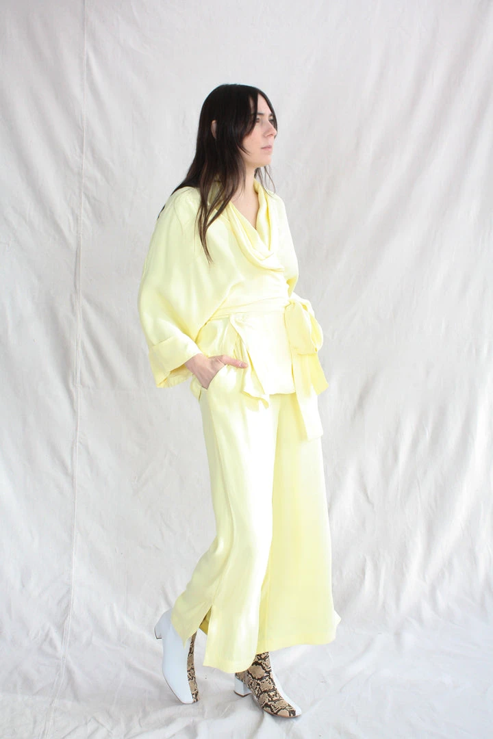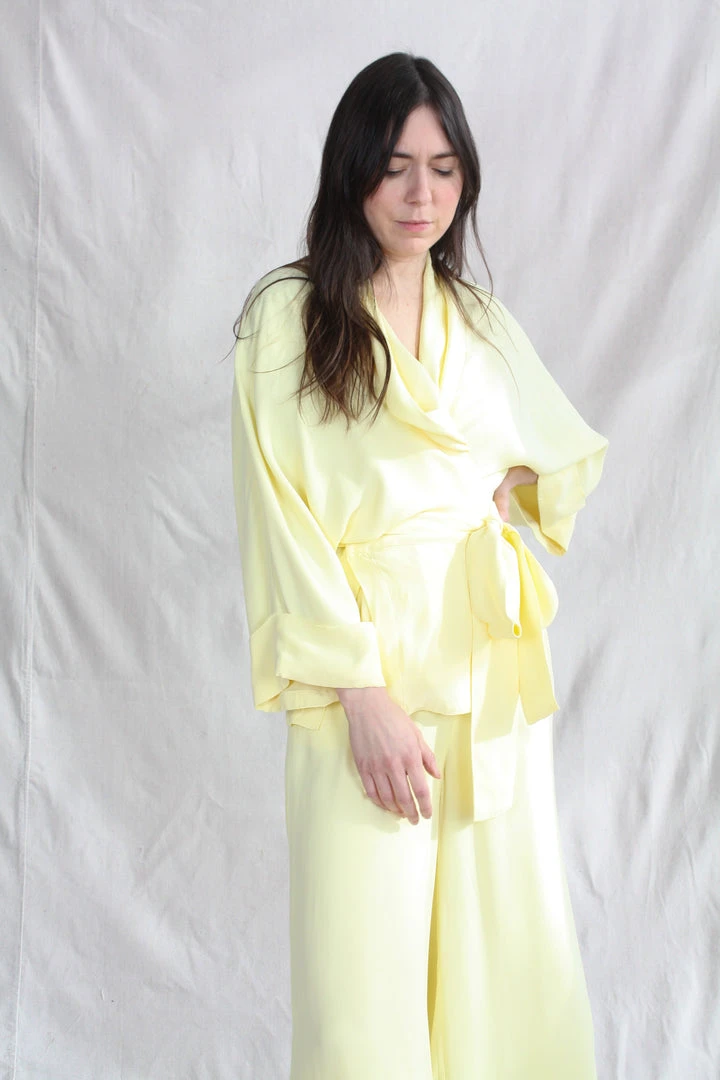 The luxurious, laidback design of the Tennessee kimono has a satin surface turned inwards towards the skin for a sensual, self-seductive appeal. It has the classic Rodebjer kimono silhouette, it features a shawl collar and a belt to be wrapped around the body. The slits placed at the hips are flattering and practical making Tennessee a truly versatile wardrobe staple.