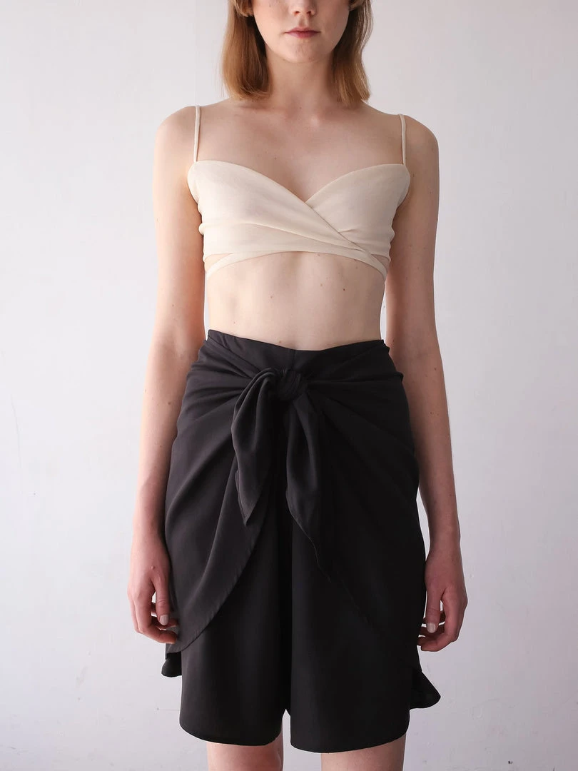 A high-waisted, wide-leg short that wraps around the body to tie at the front waist. Designed with intention to last for years to come, all seams are dually-reinforced french seams.