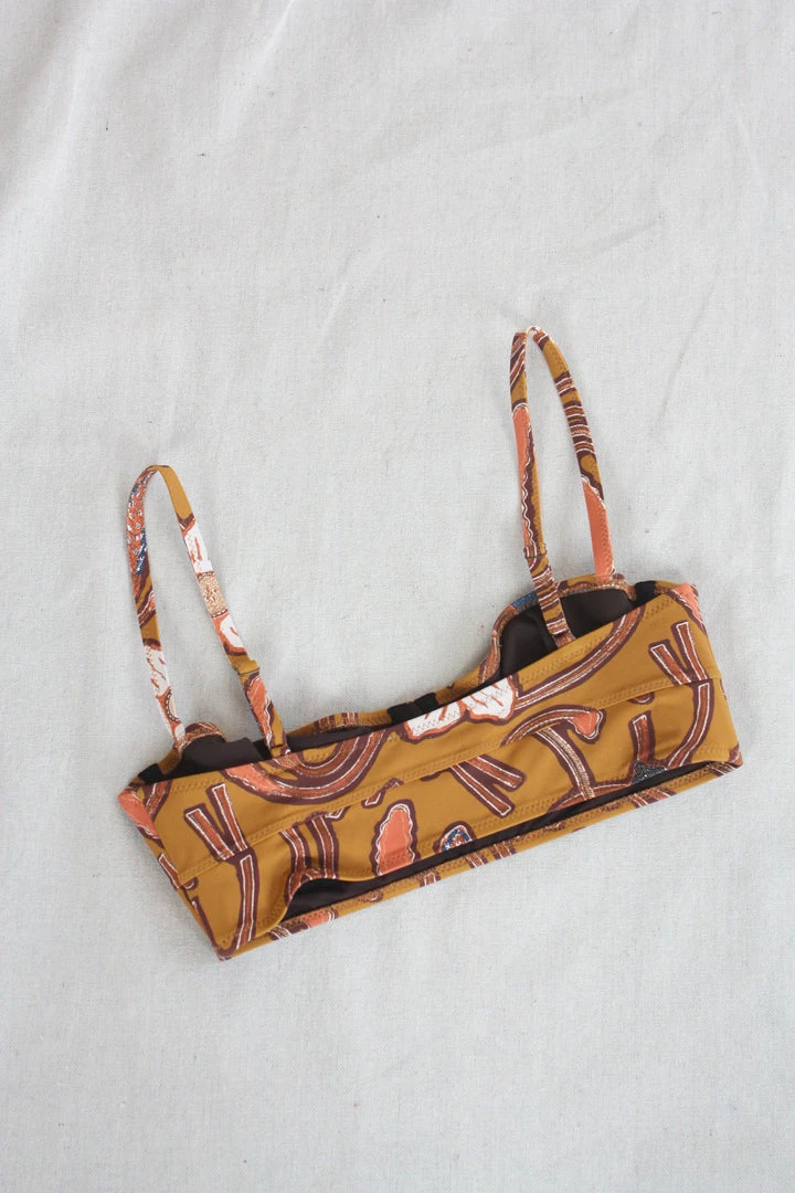 The Zahara Bikini Top features underwire cups and corset style boning. This top has delicate and adjustable spaghetti straps, and is cut in our Italian-made floral print in Citrine.Â