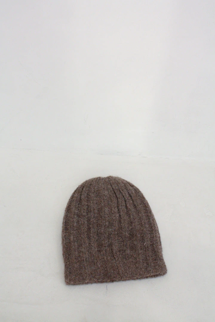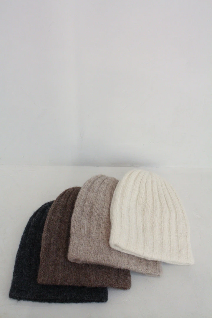 Double layer rib beanie in a brushed yarn making it lofty with a fuzzy texture and super warm.
